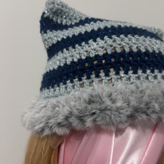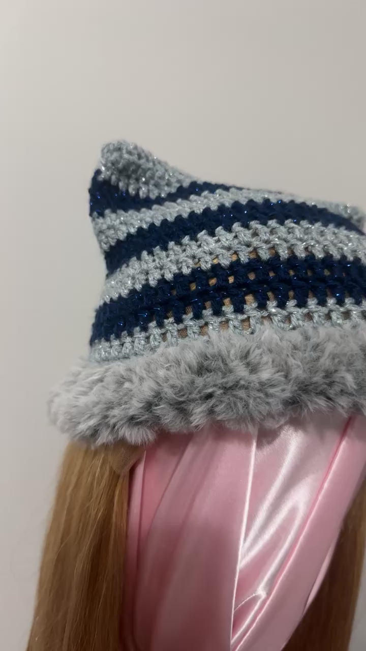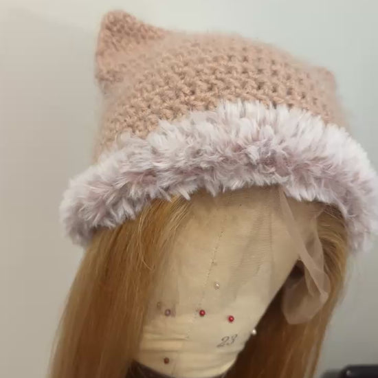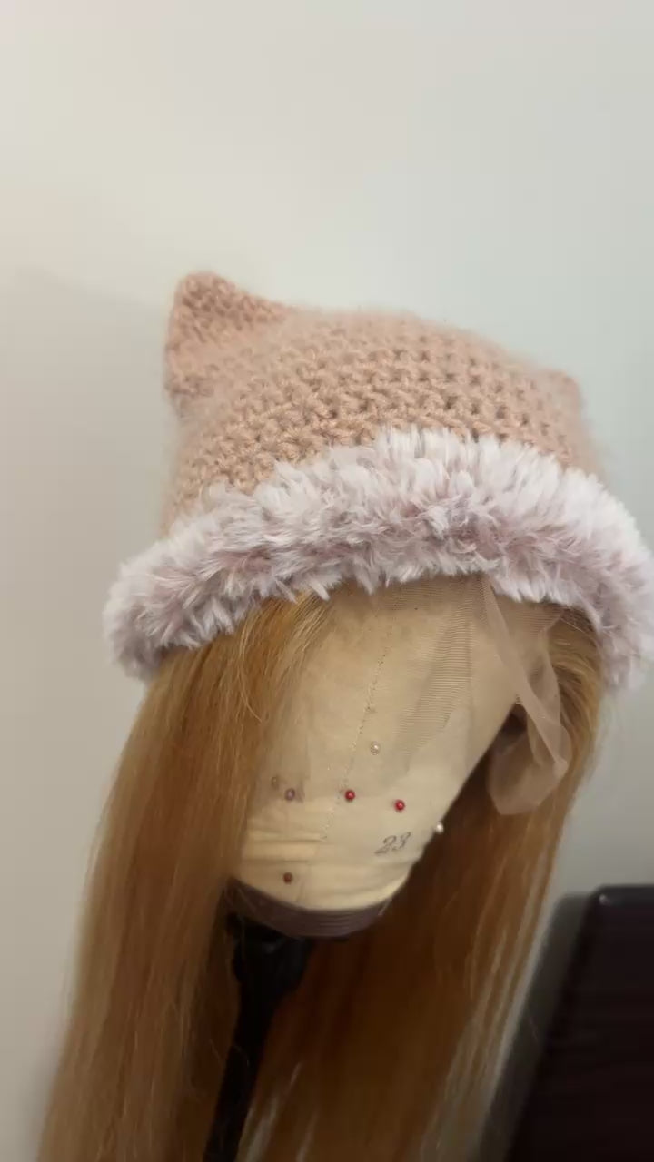 Embrace your playful side with our hand-crocheted Cat Ear Hat, designed for warmth and whimsy. Crafted with love and meticulous attention to detail, this unique accessory features charming cat ears that add a touch of fun to any outfit. The luxurious fur trimming provides a soft contrast, making it not just stylish but also incredibly cozy.